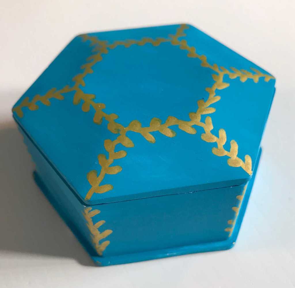 J’ai recouvert la boîte d’un vernis mat pour la protéger un peu, j’ai peur que ça ne soit un peu fragile (on voit que déjà il y a quelques écalts). A voir à l’usage, en tout cas c’est très sympa à faire !